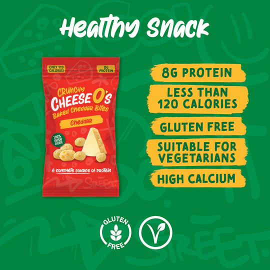 Description Crunchy, savoury CheeseO’s Cheddar bites are exactly what they sound like—100% Irish Cheddar turned into delightfully puffed morsels. Perfect for quick snacking or lunchboxes, they offer mighty cheese flavour in a tidy 20 g bag. These bites are gluten free, high in protein and low in carbs—ideal when you want...